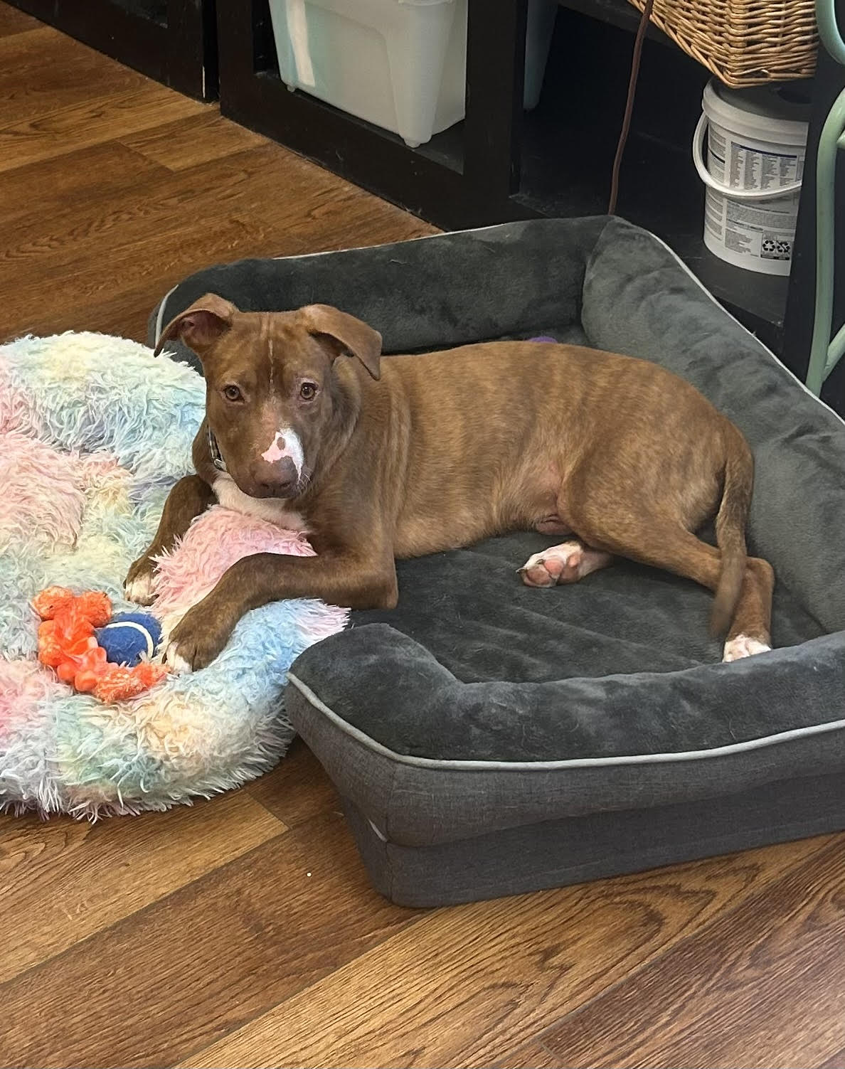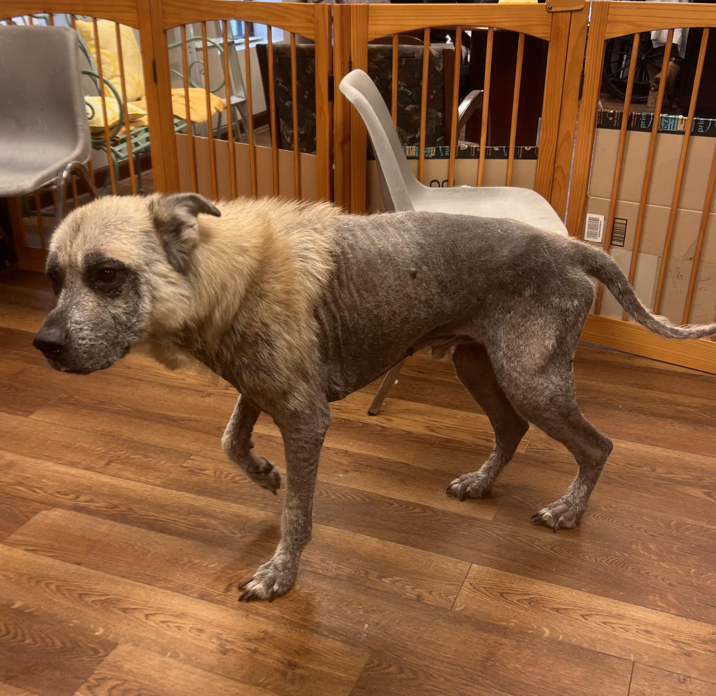 black/brindle legs/white